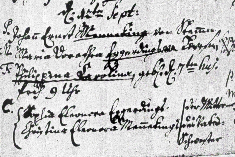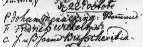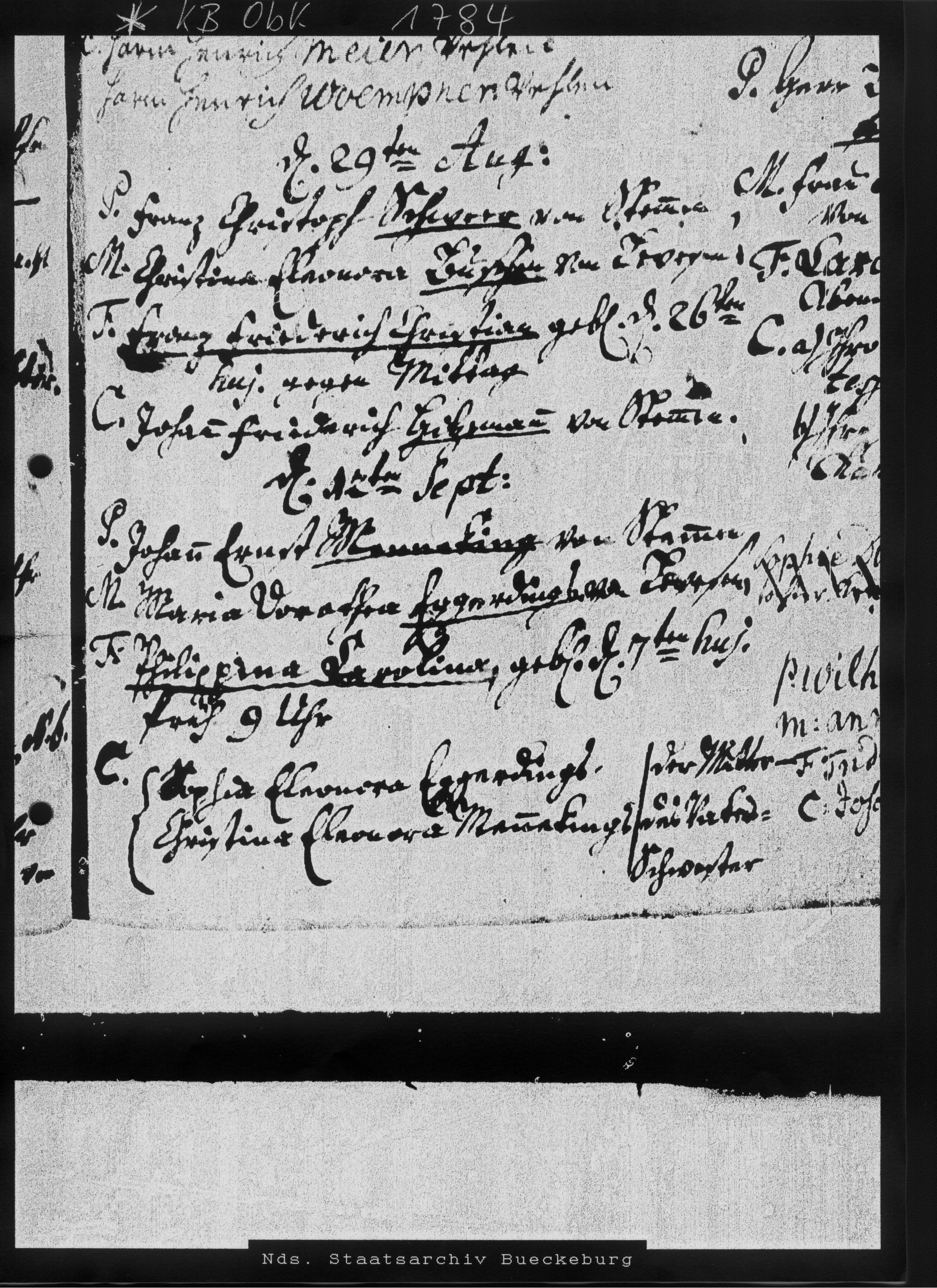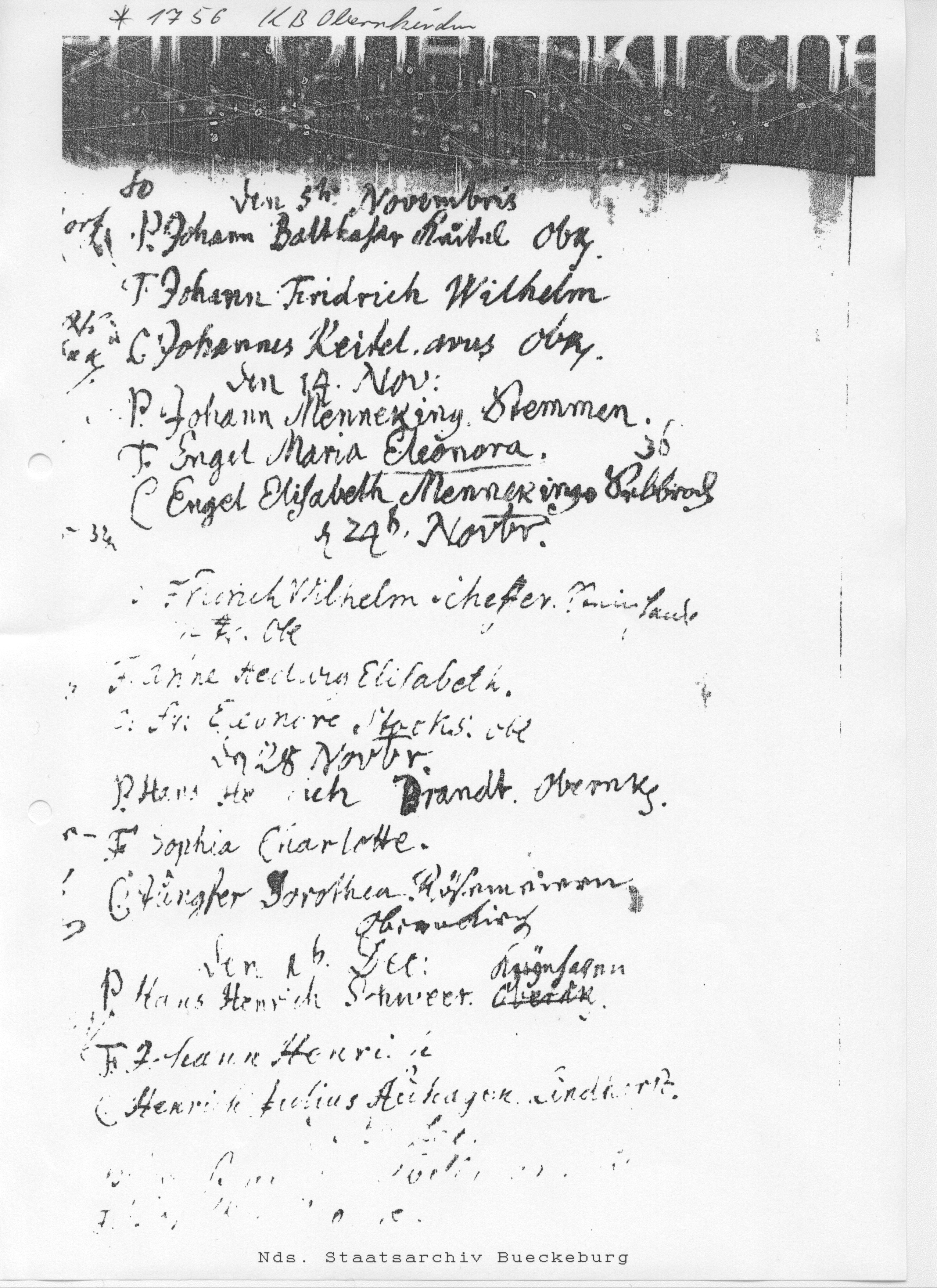 oo Obernkirchen, , 03.06.1781 Maria Dorothea Eggerding, * Eversen, , 09.04.1758, † 09.08.183211. Menneking, Christina Leonora, * 24.06.1762 12. Menneking, Friedrich Christian, * 04.12.1767, ~ Obernkirchen, , 04.12.1767 13. Menneking, Fridrich Wilhelm, * 22.10.1769 14. Menneking, Johan Friedrich, * 01.01.1772 3 Kinder von Nr. 10 15. Menneking, Philippina Carolina, * 07.09.1784 16. Menneking, Sophia Dorothea Wilhelmina, keine, * Stemmen, , 21.03.1787, ~ Obernkirchen, , 25.03.1787